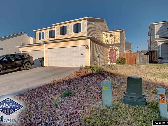 Enjoy all the benefits of newer construction without the big price tag! This wonderful home offers a fantastic floor plan with your laundry and bedrooms on one level and your living areas plus a half bath on the other! You'll fall in love with the large deck with pergola for entertaining or just enjoying some quite time on. The central air, finished garage, with extra electrical, fenced yard, and a large storage shed round out the amazing amenities in this home! To view call/text Team WyoCity 307-439-5554!