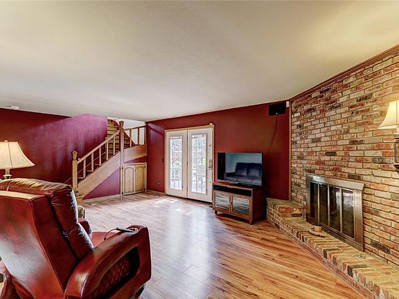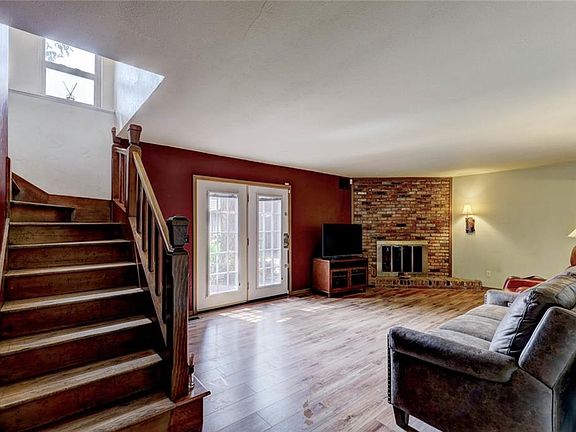 You will love the privacy of the dead-in-street! Pantry in kitchen. Pergo type flooring throughout. Updated windows. Both the downstairs living and the upstairs den have fireplaces. A bit of paradise in your backyard with flagstone walkway and patio furniture that can remain along with the gas grill. You will love the nice outbuilding. Above ground safe room in the garage.