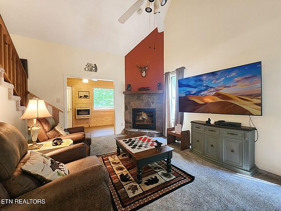 RENTAL INCOME OF $41,543 IN 2023. Discover the charm of this 1-bedroom, 2-bath cabin, perfect for accommodating up to 6 guests. Ideally situated less than 10 minutes from Arts and Crafts district and a short drive from the attractions of Gatlinburg and Pigeon Forge (about 15 minutes). Step inside to find a welcoming open living area featuring a cozy fireplace, soaring cathedral ceilings, and a comfortable sleeper sofa. The thoughtfully designed layout provides ample space for relaxation and entertainment. The main floor includes a cozy bedroom and a full bathroom, while the loft upstairs offers a second queen-sized bed and an additional bathroom for added privacy and comfort. Enjoy a bonus space adjacent to the living room, perfect for a game table or additional seating. Unwind on the back deck, where a hot tub awaits you, nestled in the beautiful wooded surroundings. NEW water heater, hot tub and refrigerator, NEW carpet in 2020, NEW architectural shingles on the roof 2017.
