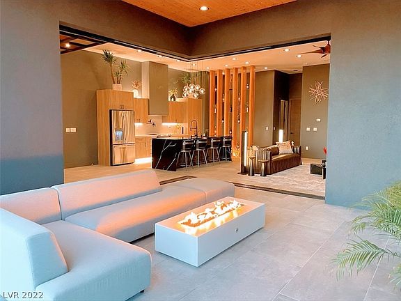 Truly a one-of-a-kind home at Spring Mountain Raceway which is a private racetrack. This rambler offers luxury at its finest. Accent lighting throughout the interior and exterior, quartz counter tops, luxurious finishes throughout, 12' ceilings, a custom full-size bar, custom closets, beautiful wood finishes throughout, and it comes fully furnished and ready to host all of your friends and family. The exterior boasts of a fire pit with wrap around seating, flat screen TV, 10 person Infinity spa, exterior doors that open to bring the outside in as you sit track side. The 4 car garage is also temperature controlled.