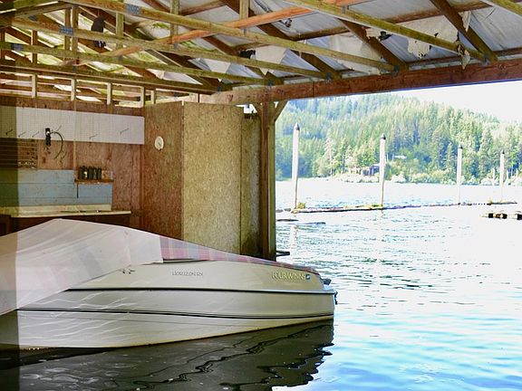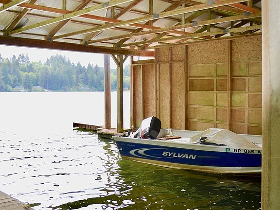 Lakefront Home on South Tenmile Lake! 3 Bedrooms & 1 large bth open, airy lake home w/ excellent aesthetic lines & high ceilings. Best cove on South Lake! Large, expansive deck w/ great views! Wind protected backyard & deck & storage shed! Easy access via boat - directly across from Marina. Property sold furnished. Fully enclosed, large pontoon boat included in sale. Huge 4 stall boat house w/ covered dock & outbuilding.