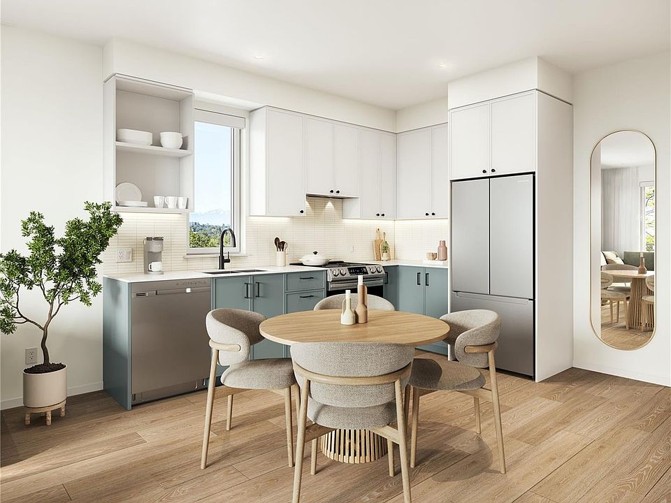 With construction underway, Oak & Stone by award-winning Abstract Developments sets the standard for vibrant, west coast living. Centrally located in the newly revitalized Shelbourne Valley, you’re minutes from the University of Victoria, Camosun College, parks, recreation, and shopping. This 562 sq ft Jr 2 Bed, 1 Bath ground-level home is highlighted by over-height ceilings, expansive windows and a spacious west-facing patio perfect for soaking up the afternoon sun. Show off your cooking skills in your gourmet kitchen featuring quartz countertops, under-cabinet lighting, matte black hardware, a premium stainless steel appliance package complemented by cabinetry in a choice of either white and woodgrain or Fjord green slim shaker. In-home flex space with a window offers a versatile area that can be used in various ways to suit your lifestyle and needs. Includes one parking space and cycling-friendly amenities including dedicated secured bike storage with e-bike charging. Price + GST.