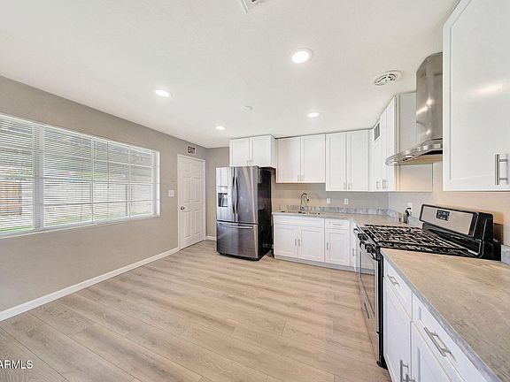 Beautifully remodeled red brick home with 4 bedroom, 2 bathroom, & a carport! All new wood laminate flooring throughout! New interior two tone paint! New white shaker kitchen cabinetry, new quartz countertops and stainless steel appliances including fridge! New lighting fixtures! New roof! Interior laundry! Split floor plan!! New insulation! Newer HVAC! Large covered patio!! Double RV gates!! Extra wide driveway!! New artificial grass & gravel landscaping in front and back! Near Glendale Historic District & Grand Canyon University!! Shopping, dining, walking!! Come make an offer today!
