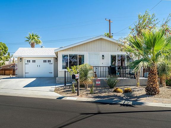 Enjoy breathtaking mountain views and abundant natural light in this beautifully updated 3 bedroom, 2 full bathroom turn-key home, enhanced with clerestory windows and sun tunnels for a bright and airy feel. The open concept design offers seamless flow and thoughtful upgrades throughout. Step outside to a spacious front patio to enjoy the sunsets as well as the professionally landscaped yard. The back patio- perfect for entertaining or simply relaxing in a serene private setting. The outdoor kitchen and bbq area provide excellent alfresco dining opportunities. The fenced yard- with fruit trees and artificial turf create a superb desert oasis. This property has the 433A permanent foundation making financing possible. Located in the heart of the community, you're just minutes from dining, shopping, and entertainment. Tri Palm Estates & Country Club is a vibrant 55+ community where you own the land and enjoy unlimited free golf on two courses, plus access to pools, spas, tennis, pickleball, shuffleboard, basketball, and more. The Community Clubhouse offers a banquet room, restaurant, bar, billiards, and a variety of clubs and activities for an active, social lifestyle. Don't miss this opportunity--schedule your showing today!