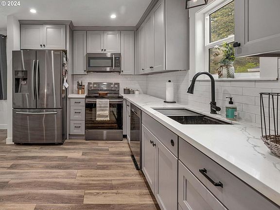 Welcome to your fully renovated home! This charming home has been completely transformed, featuring new quartz countertops, soft-close cabinets, stainless steel appliances and flooring throughout. The bathroom offers large tile shower with a tub. Fresh paint both inside and out.Outside, a roomy 24x36 shop, ideal for storing your toys and tackling projects. The property sits on a spacious .38-acre fully fenced lot, offering plenty of outdoor space to enjoy and room for the RV.Finished detached garage, perfect for extra space.Don't miss out?schedule a viewing before it's too late. Multiple offers received. seller to review Monday.