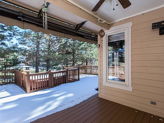 Stunning Main Floor Master in Desirable Castle Pines Village! Ranch Plan with Extensive Hardwood Floors. Open Kitchen with Granite Counter Tops & Custom Cabinets. Stainless Steel Appliances including Double Ovens, Microwave and Fridge, Gas Cook Top. Kitchen Open to Hearth Room with built-Ins and Rock fireplace. Formal Dining Room, Great Room with Rock Surround Fireplace. Master Suite with Fireplace, Access to Deck, 5 Piece Master Bath with Walk-In Closet, Main Floor Study with Built-In Cabinets. Finished Lower Level with with Wet Bar. Entertainment Room, 2 Bedrooms and 2 Custom Built Bath Rooms. Large Private Deck with Electric Retractable Awning. Over Sized 2 Car Garage with Numerous Built in Cabinets, Finished Garage Floor, Access Door and Windows. Security System, Private Cul-De-Sac Location. Security Guard Entrance, Walk to Fine Dining and Shops. Don't miss the Opportunity to Live Nestled In the Pines of a Enclave of homes that rarely come on the market to purchase.