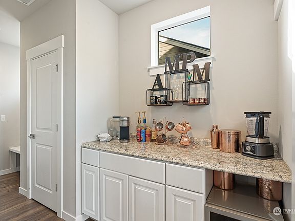 Elegance & functionality shines thru on this exceptional, spacious 5 bedrm home located in newer, quiet neighborhood. Open concept main level features chefs kitchen w/ white granite countertops & eating bar, ample cupboards, designer lighting & dining area. Main living room is open to kitchen w/ vaulted ceilings, large windows & cozy gas fireplace. Bonus bedroom/den/office also on main. Upper level features add'l living rm, laundry & 4 bedrms including fantastic primary bedroom w/ impressive ensuite bath & walk in closet. Lush grass yard, covered upper deck & private lower patio area. Great curb appeal w/ stone accent & covered front porch. Enter thru formal foyer area w/ high ceilings or convenient area off garage w/wet bar & office nook.