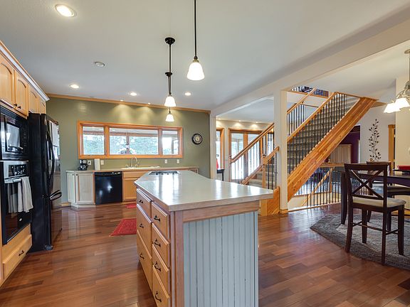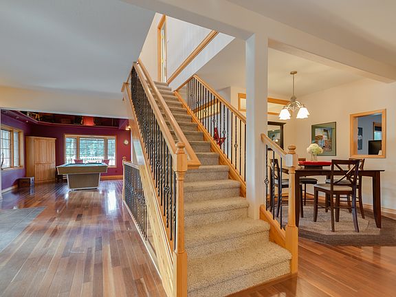 Beautifully custom built 2 story on 6+ acres. Wrap around porch, hrdwd flrs, huge kitch and center island w/lots of cabinet space. Main flr bdrm w/tiled 3/4 bth. Nice fam room w/frplc, additional game rm. Upstairs master suite has a gas fireplace, huge walk in closet, soaking tub and shower that is partially fin, double sinks, complete w/deck. Huge 2500sf garage/shop or run your business at home. Basement has full guest quarters, kitchen, bedroom/family room, laundry and outside entrance. Amazing place!!