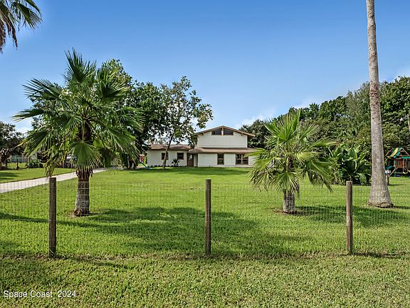 Tranquility and country living at it's finest! Bring your animals, your toys and whatever else you want to. But you HAVE to check out this 5 bed 2.5 bath home sitting on a beautiful acre of land. With over 2500 square feet of living space, there is plenty of room for a growing family, a multigenerational family or a family looking to retire! Recent updates include new roof, septic system, perimeter fence and gates in 2021. Water heater 2024. 50 Amp and 30amp RV Hookups on a pedestal. This home also features an oversized 2 car garage with custom workshop cabinets wired in 220v for large shop tools, 2 storage sheds! Large patio in the back for those bonfires and barbeques. 10 mins to Walmart and Publix 15min to the beach and 20 mins to the Space Center
