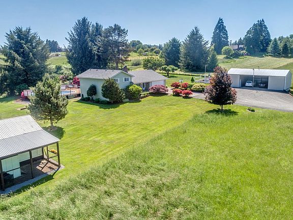 NO OPEN HOUSE 5-26-18, LARGE SHOP and 3 bays for all the toys, SHE SHED or barn, 5 flat useable acres, downstairs room off family room could be used for bedroom, Garden is very spacious, above ground pool with deck surround works right into the landscaping and entertaining space in private backyard,hot tub on deck stays,fenced 3 sides, extra room in downstairs could be a bedroom. Water tastes incredibly good!