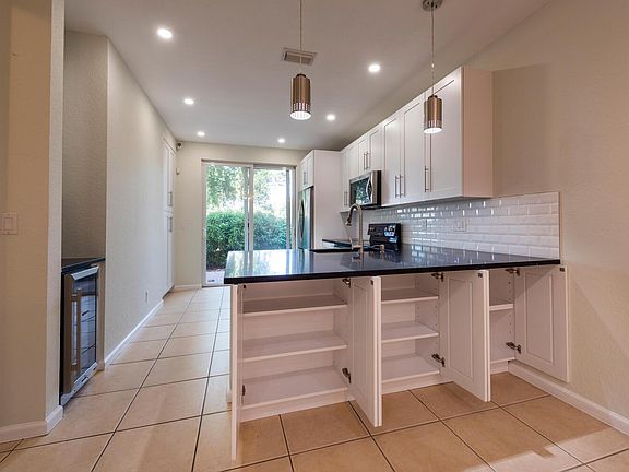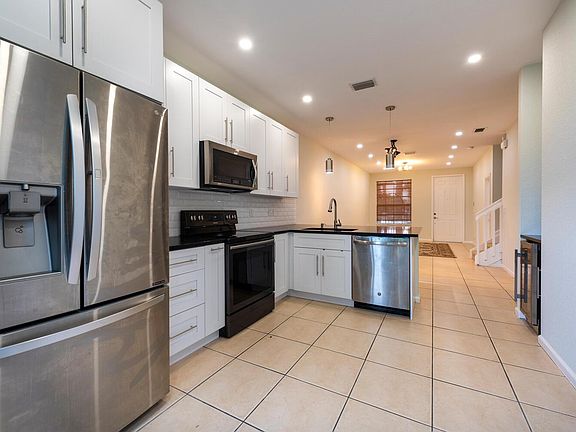 Light bright beautiful 3/3 townhome. 2-Story spaciously designed 1555 sqft 3B/3B 1-car garage +2-cars driveways. 1/1 on 1st floor perfect as home office! Impact windows. NEW KITCHEN ALL NEW SS appliances; modern cabinets storage space oversized granite countertop.Digital & SS microwave/oven, Moosoo EdgeStar digital SS wine-cooler custom-made granite top & cabinets! Oversized SS kitchen faucet. Double-door SS refrigerator Pull-Out Drawer; SS W/D Dryers (1st floor). 2nd floor Loft area great for children's play area or additional family space to gather. Oversized Master Bedroom 2 walks-in closets. Dual sinks,large Master Bath shower. Tile & carpet throughout. Upgraded/modern ceiling fans, modern chandelier. LED dim lights.Security system New garage door/motor. Large custom-build brick-porch. renter responsible for all utilities. HOA restrictions may apply for certain renter criteria. Pls ask listing agent.