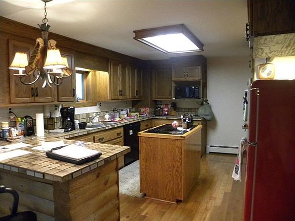 Country Pure & Simple. Dramatic, surprising fun with architecture is found in this REAL Log home with windows & skylights to watch nature drift by. Loaded with extras from finished basement to tons of storage in loft garage. Water Softener. Some ceiling fans. Woods and open area of land.