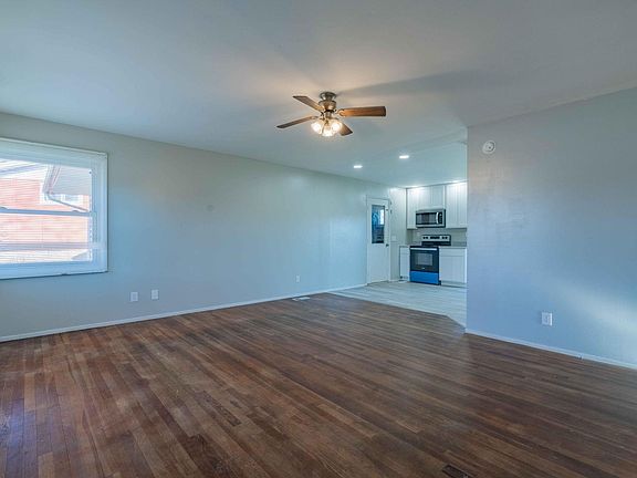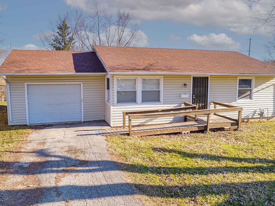 Super charming open concept ranch home with original hardwood floors! You will love the clean and crisp curb appeal and front deck opening into a large great room with double windows, bright new kitchen cabinets and countertops including appliances, new luxury vinyl plank floors and sliding door to the backyard. The bathroom features updated plumbing stack, new tub & surround. The bedrooms are nice sized with ample closets and new lights. The garage has plenty of space with new electrical panel and some updates to the wiring including GFCI's and overhead lights to the bedrooms. Other notable features include low maintenance vinyl siding, replacement windows, new water heater, new bathroom flooring, new bathroom vanity and new light fixtures.