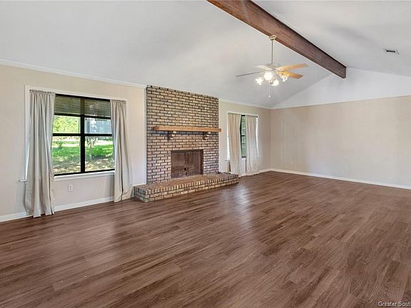 Welcome to country living in South Lake Charles located near Graywood Subdivision. This expansive and charming home is perfect for those seeking space, comfort, and unique features. Nestled in a serene neighborhood, this property offers an exceptional living experience. Enjoy the comfort and convenience of two spacious primary bedrooms, each with its own en-suite bathroom, providing an ideal setup for multi-generational living or accommodating guests. Each bedroom in this home is generously sized, offering ample space for relaxation and personalization. The kitchen seamlessly opens to the living room, creating a warm and inviting space for entertaining and family gatherings. The layout is perfect for those who love to cook and socialize simultaneously. Bask in natural light all year around in the delightful sunroom, a perfect spot for morning coffee or a cozy reading nook. Fenced backyard allows you to step outside to a private oasis featuring mature live oak trees and a secure, fenced area. The backyard is not only spacious but also home to many adorable bunny rabbits, adding a touch of nature and charm. The workshop is ideal for hobbyists or DIY enthusiasts, the property includes a workshop equipped with water and electricity, complete with an attached porch for outdoor projects or relaxing breaks. The home boasts a four-year-old roof and two HVAC units.