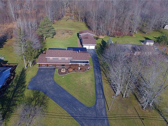 This sprawling custom built split level layout offers three floors of finished living space to include four bedrooms, an oversized outbuilding, and 1.5 acres of land. The first floor combines a prominent family room that provides scenic views of the backyard and looks on towards a masterful kitchen with dark stained cabinetry and built-in appliances. A decorative stone fireplace separates formal dining from the adjacent living room as natural light fills the floorspace. Upstairs, three nicely sized bedrooms with great closet space line the hall, two of them offer scenic backyard views and walk out balconies that overlook the fantastic deck below. The full main bathroom is at the beginning of the hall and offers large vanity space. Downstairs, a home office space is near the laundry/utility room that makes way to the massive master bedroom with a gas fireplace, walk-in closet, and private full bathroom. An additional full bathroom resides off the family room. The detached oversized 3 car garage yields a twelve-foot side entry door as it ends the wraparound driveway. Finished off second floor space makes for a great rec-area or entertainment venue. Additional attic storage can be found in the house and over the garage. Updates: roof 2018, interior painted 2018, carpet 2018, and so much more!