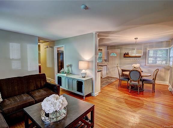 Check out this updated ranch home minutes from Uptown, Restaurants, Shopping and more! This versatile 3 bedroom home with sunroom offers you so much! Cool down with the brand new HVAC, enjoy the convenience of hardwood floors throughout, brand new carpet in bedroom 3, custom cabinets in bedroom 2, while the kitchen features a stylish backsplash, granite countertops, tile flooring, custom built in's & space for a wine refrigerator! The bathroom is captivating with its brushed nickel fixtures, lighting,& mirror, along with the custom tile work. Designer lighting completes the dining space. Entertain outside on the deck, gather with friends around the firepit this fall, or relax on the swing in this fenced back yard. Seller has also added a new water line from the street to the house. Come see today! It won't last long.