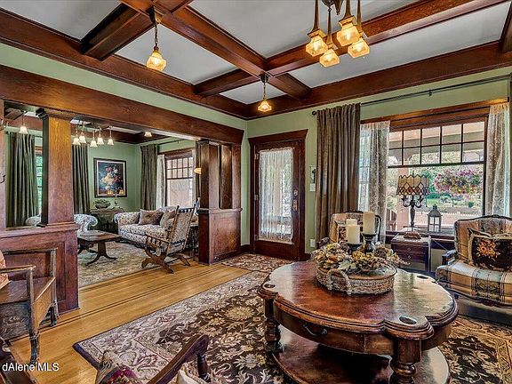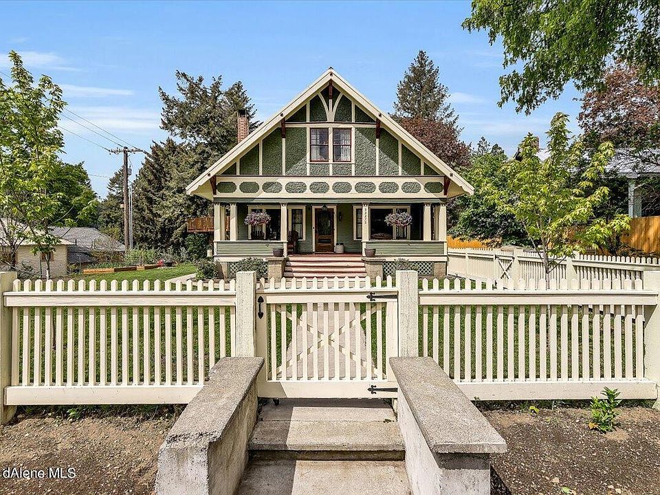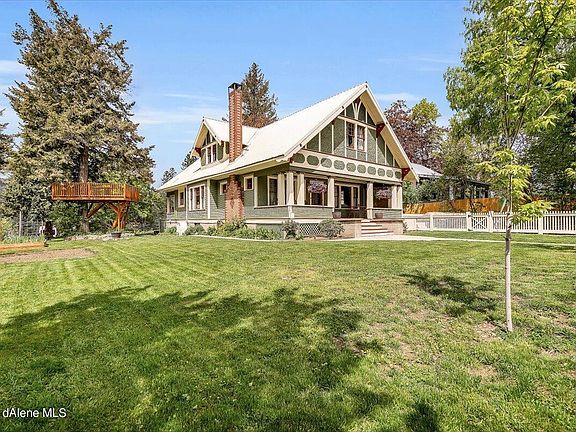 The moment you step into this craftsman jewel you will immediately be taken back to the turn of the century. Original wood floors run throughout the living room and den as well as in the formal dining room featuring built in cabinets with hand cut glass. Coffered ceilings give the home an elegant and distinguished look and the remodeled kitchen features all of the modern touches. Stay comfortable thanks to a newly installed dual zone forced air system and tankless hot water heater. Enjoy the views of your large lot from your oversized and covered front porch, or take a short walk or ride to the Spirit Lake public beach and boat launch or Maine Street to take in the shops and restaurants downtown. The side yard features garden beds and fruit trees and from the backyard you'll enjoy filtered views of the lake. Updated plumbing and electrical, Quartz countertops in kitchen, Fenced in chicken coop Professionally installed Lopi wood burning fireplace.