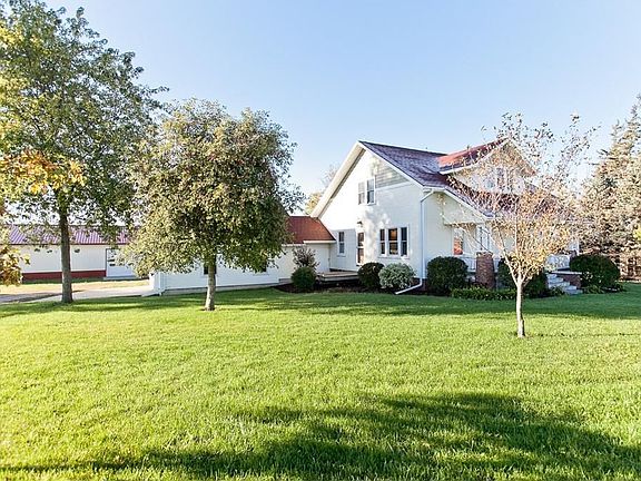 Beautiful, private home on 5.33 acres with a 48x72 shed! Country living at its best! Enjoy the peace and serenity of this acreage with mature trees, a corn crib, 2 outbuildings, and a huge 48x72 steel machine shed with concrete floor & large overhead door - perfect for storing all your toys! Gorgeous home with updates throughout. You will be welcomed by the spacious living room with hardwood floors & French double doors that lead to the formal dining room. Updated kitchen with new cabinets, flooring, high definition laminate countertops, apron front sink, stainless steel appliances & daily dining area. Main level bedroom with hardwood floors & an updated bath with newer vanity, toilet & shower. Upstairs you will find the spacious master suite with large closet & new carpet. 2 additional bedrooms with hardwood floors & an updated bath with tile floors, tile backsplash, new sink, tub & vanity completes the upper level. Drop zone just off the garage with tile floors. Laundry room with utility sink, tile floors, & washer & dryer included. 2 stall attached garage with newer garage doors. Newer roof & siding. Don't miss the wonderful acreage with a beautifully updated home and amazing outbuildings!