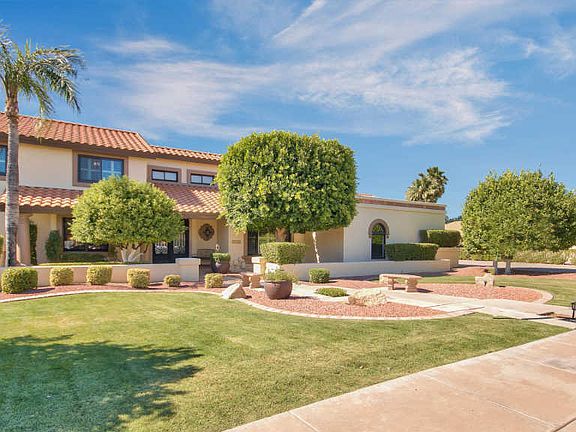 Beautiful semi-custom home located in one of North Mesa's most COVETED neighborhoods known as The Groves! This perfect floor plan features a total of 4BR/4BA (lower level Master BR). Amazing updated kitchen features upgraded granite counters, cabinetry, upgraded appliances & custom service island.Featuring vaulted ceilings with custom wood beams, custom storage, a ''tech area'', fireplaces & separate den/office. Beautiful front & backyards makes a statement with grass, mature citrus / shade trees, pool & spa with direct access off of the master bedroom.Oversized 5-car garage for both your cars & toys, plus an above garage attic for added storage space.GREAT location, only minutes to the area lakes, 25-30 minutes to Old Town Scottsdale and Phoenix Sky Harbor Airport.
