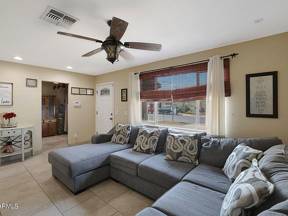 As you step inside, you'll be greeted by spacious, large-sized bedrooms and a fully updated kitchen that will inspire your inner chef. The entire home is carpet-free, ensuring a clean and contemporary feel throughout. Stay cool during the Arizona summers with a newer AC unit, and enjoy peace of mind with no HOA restrictions.