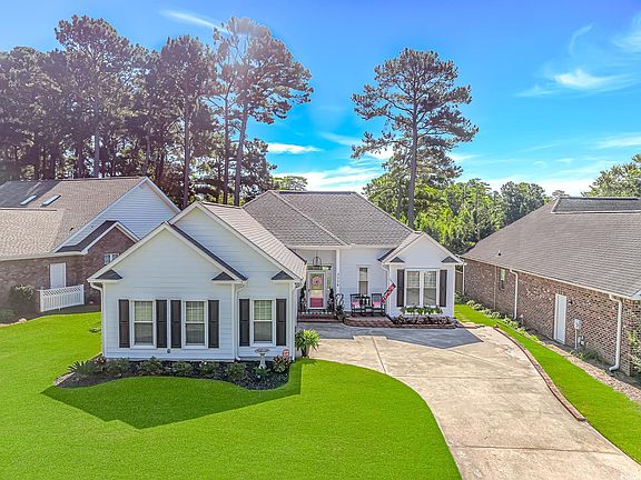 Location is everything, and this beautiful, immaculate 3 Bed/2 Full Bath home in the heart of Little River checks the boxes. This move-in-ready home sits at the 14th tee of the River Hills Golf & Country Club, and is aprox 6 minutes to the ocean. Upon entering the home, the foyer has transom windows in the doorways and invites you into the living room complete with a gas fireplace and open concept into the kitchen and dining area. This split floorplan has new LVP flooring, fresh paint, new fans and blinds, irrigation system, and a newly remodeled luxurious primary bath complete with a sunlight. New SS appliances, quartz countertops, under & over cabinet lighting, and pendant lighting over the breakfast bar, enhance the warm kitchen. Relax in the spacious primary suite that has a tray ceiling and offers a view of the golf course through the bedroom windows. The enclosed sunroom provides hurricane-grade windows and opens up to the back porch, which is made of composite decking. What a great place to cookout or just relax peacefully! Hardy Plank allows for longevity, and the professional landscape is fresh. In addition, the garage door includes a removable screen for a versatile living space, which is great for pets, exercising, man cave, etc... Home also includes metal hurricane shutters, which will typically provide a homeowners insurance discount. Finally, the LOW HOA is attractive. This is truly a hidden gem close to everything Little River and North Myrtle Beach has to offer. Schedule your showing, as this is a "must see."