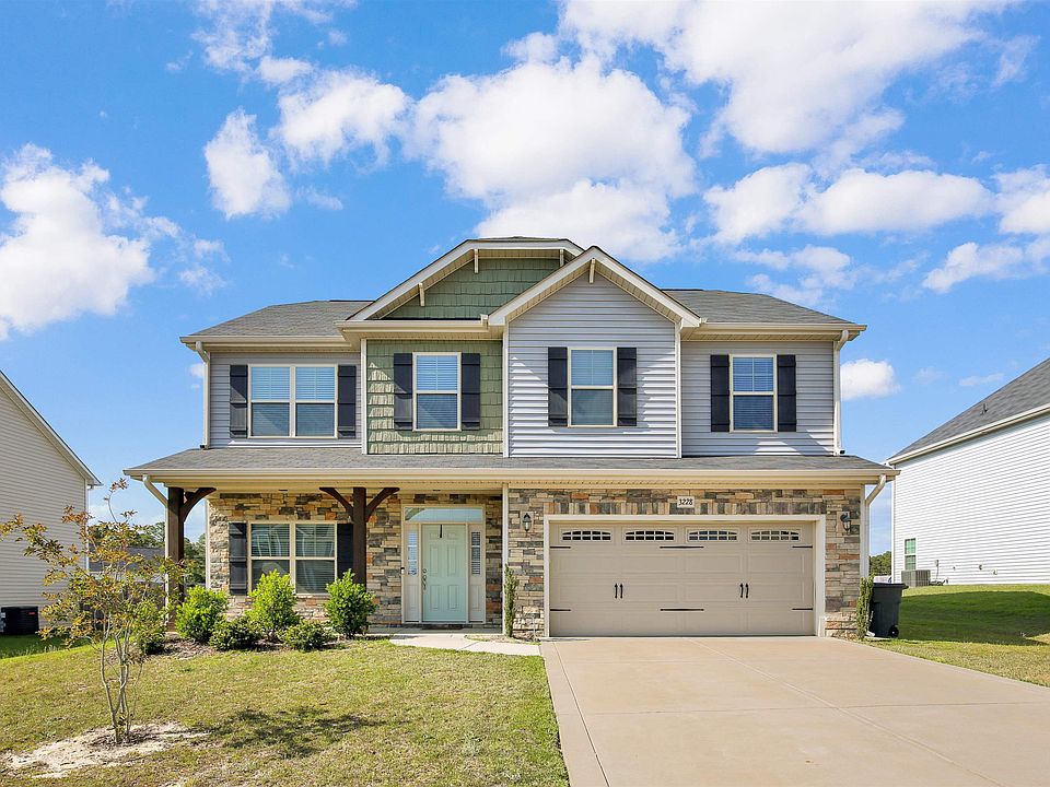 Welcome to this exceptional 3-year-old home located in the most desirable, Jack Britt school district. This home boasts 5 bedrooms and 2.5 bathrooms, with a spacious open concept floor plan. Upon arrival, you are greeted by a beautifully landscaped front yard and well-kept exterior that exudes timeless elegance.Step inside, to be greeted by the kitchen, gathering room, and dining area that all flow together for entertaining. The owner’s suite provides a private sanctuary where you can unwind and recharge. This spacious bedroom hosts plush carpeting and a walk-in closet for all your storage needs. Additional 4 bedrooms are generously sized and offer ample closet space. This home also has a convenient second floor laundry. All your necessities are conveniently within 5 miles of your new home. Just down the street is a Harris Teeter, Walmart, and Food Lion for all your grocery needs. Additionally, there are 20 fast food and sit-down dining options to choose from. Don’t miss the opportunity to make this exceptional home in the sought after Jack Britt School District your own.