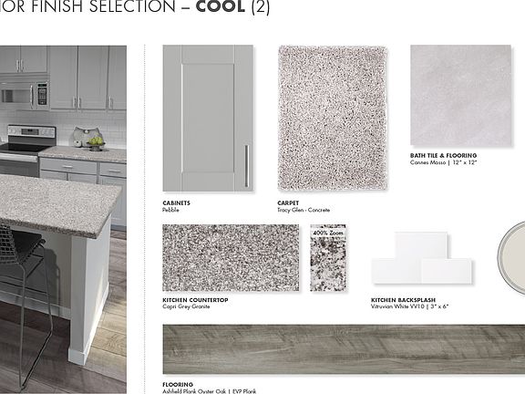Purpose the Newport's sizeable flex space into the media room you've always wanted. Pebble cabinets with Capri Grey granite countertops, grey Oak EVP flooring and textured carpet come in our Cool package.