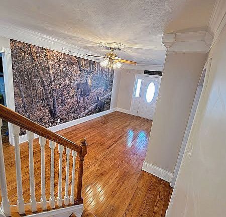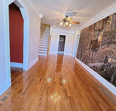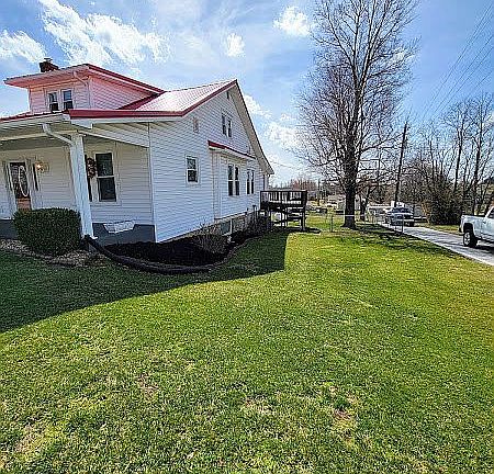 2041 square ft with 12x27 master bedroom on first floor. Walk through closet plus walk in closet. Laundry room with folding counter space plus sleeping crate for pets. Beautiful kitchen includes stainless steel stove, dishwasher and refrigerator. Large dinning and living room area with ceiling fan. Plantation blinds in all windows. Full bath, 2 bedrooms and sitting area with TV and dartboard upstairs. 1100 sqft of unfinished basement. Large original back porch for your fur babies to get out of the weather. Was making into a craft area. 10x12 deck with dog ramp to back yard. Stunning flower beds on each side of house. November 2018 new red metal roof and gutters. 1/4 acre with fenced back yard. Across road from Stamping Ground Elementary School, EMS and Fire Station. 10 miles from Georgetown.
