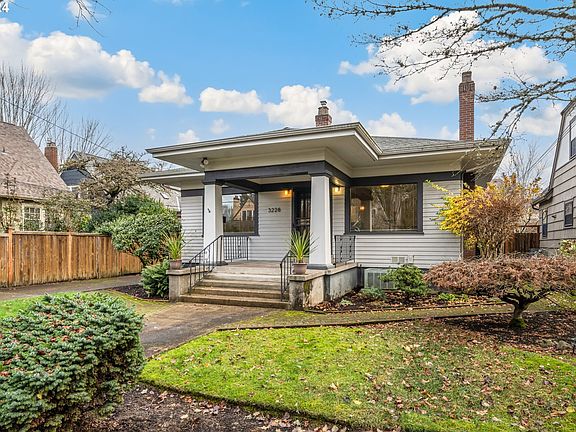 This Charming bungalow in sought after Irvington neighborhood sits nestled on desirable extra wide, tree lines street. The inviting front porch brings you into this 3 bedroom 2 bath home. The main floor features hardwoods, gas fireplace, built-ins, glass french doors, spacious living room with a lovely dining room to entertain. Two bedrooms on the main, along with charming bathroom that brings you back in time. The basement is finished featuring vinyl flooring throughout, 3rd bedroom, plus a bonus room, which would work as additional bedroom, office, family or exercise room! generous size laundry and full bath! There is a long, flat driveway with detached garage which leads to a private, peaceful backyard. Don't miss out on this lovingly cared for home! [Home Energy Score = 5. HES Report at https://rpt.greenbuildingregistry.com/hes/OR10234587]