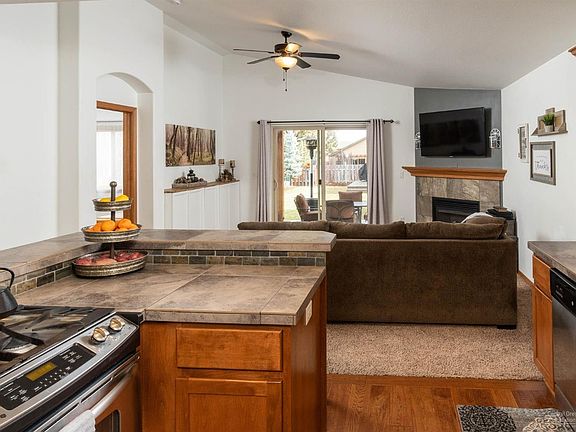 - Breakfast Bar, Ceiling Fan(s), Double Vanity, Enclosed Toilet(s), Kitchen Island, Linen Closet, Pantry, Primary Downstairs, Shower/Tub Combo, Soaking Tub, Tile Counters, Tile Shower, Walk-In Closet(s)