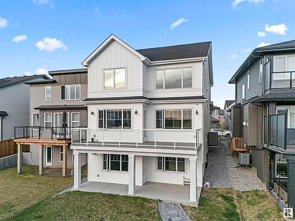 Welcome to your dream home in family-friendly Paisley! This modern farmhouse beauty backs onto green space and features a legal walkout basement suite—perfect for multigenerational living or rental income. With over 3700 SF of living space, it offers 4 beds, 4 baths, a main floor office, a chef-inspired kitchen with butler's pantry, and a huge upper bonus room. The massive primary retreat impresses with vaulted ceilings, a spa-style ensuite, and room to unwind. Downstairs, the walkout suite includes a wet bar (roughed in for full kitchen), rec room, and private laundry. Enjoy the peace of no rear neighbours, steps from dog parks, walking trails, and the Heritage Valley Town Centre. Whether you're upsizing, investing, or hosting guests—this home was built to elevate your lifestyle.