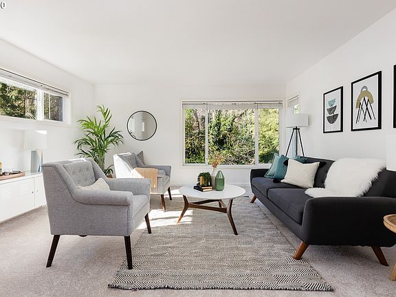 Calling all downsizers, first-time homebuyers, and savvy investors! This bright and happy mid-century is move-in ready, with pristine hardwoods, new carpet, fresh interior paint, Milgard windows, and a newer roof. Single-level living over a tuck-under garage creates a sense of being in a treehouse. The private backyard is perfect for gardening or just relaxing on a sunny day. Nature lovers and hikers will love the miles of forest trails. Ainsworth / Lincoln schools and just blocks from OHSU. [Home Energy Score = 4. HES Report at https://rpt.greenbuildingregistry.com/hes/OR10182640]
