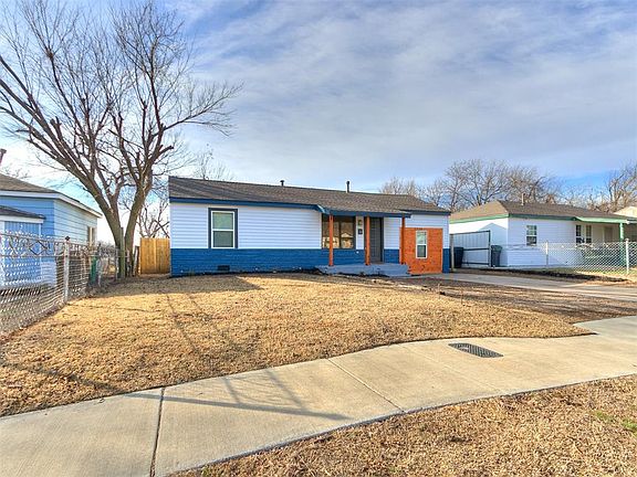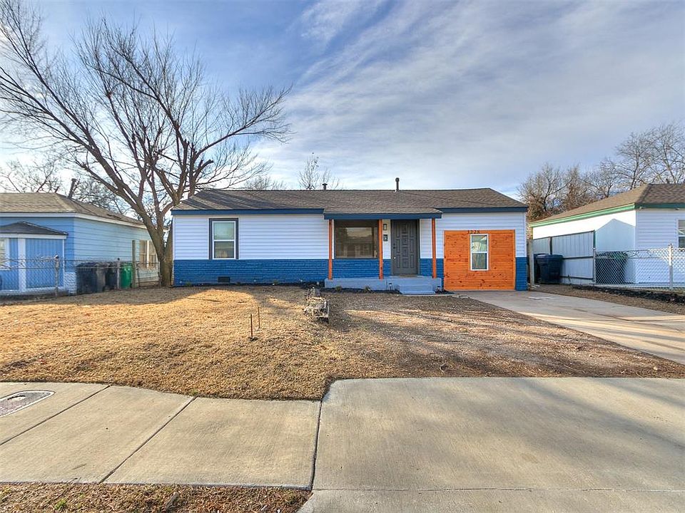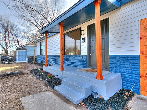 Welcome to this beautifully remodeled 3-bedroom, 1-bathroom home that exudes modern charm. Step inside to wood-look tile flooring throughout the living space, seamlessly connecting the cozy living area to the sleek kitchen. The kitchen boasts quartz countertops, stainless steel appliances, new cabinets, faucets, and ample natural light, creating a perfect space for cooking. The split floorplan offers privacy, with two bedrooms featuring new carpet, ceiling fans, and windows on one side, while the updated bathroom showcases gorgeous tile designs, a new vanity, lighting, tub, toilet and plumbing fixtures. The third bedroom, located off the living area, offers versatility and convenience.Additional highlights include a large laundry room, a storage room with an inground storm shelter, and a spacious backyard with a new privacy fence, perfect for outdoor gatherings and relaxation.This home has all the upgrades such as all-new electrical wiring and panel, interior doors, a brand-new roof, HVAC system, water heater, and siding replacement. Don't miss the opportunity to make this your dream home!