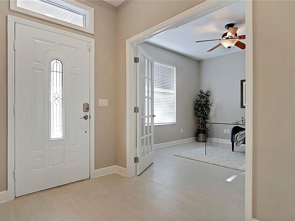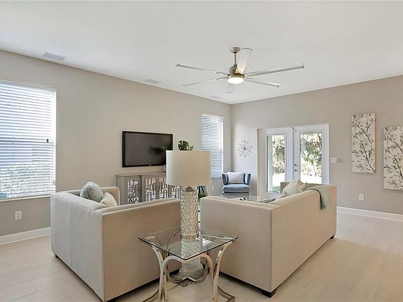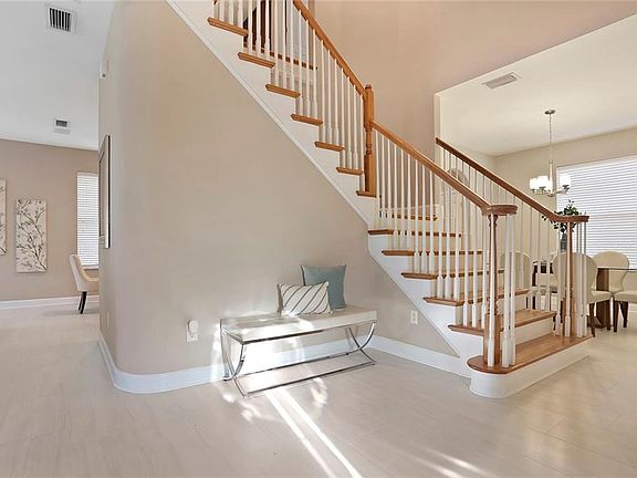 Check out this absolutely turnkey home in Wesley Chapel's premier community, Seven Oaks. Almost every inch of this home has been repainted, retouched, or reimagined with your homebuyer in mind! Many custom options can be found throughout this home, including a $20,000 custom staircase upgrade with full spindles, and a one-of-a-kind custom HERS closet with built-in shoe shelves, wood ceilings, crown molding and Romeo and Juliet window overlooking the living room (which could also double as a laundry shoot!). Enjoy your favorite shows from the TV while you relax in your soaking tub, or the large 5x5 shower. Don't worry; your 80 gallon water heater can handle it! All kitchen appliances are new including a double oven and refrigerator that can be operated using a mobile app / WiFi. The kitchen also features cabinets with pull out metal shelving, as well as a walk in pantry, granite island and pot rack. Other upgrades include integrated surround sound, all LED can lights, over and under cabinet lighting, Level 5 Italian porcelain tile throughout the first floor, fresh neutral gray paint, french doors with enclosed blinds for easy cleaning, built-in cabinets at loft for homework or office space, cabinets in laundry and garage.