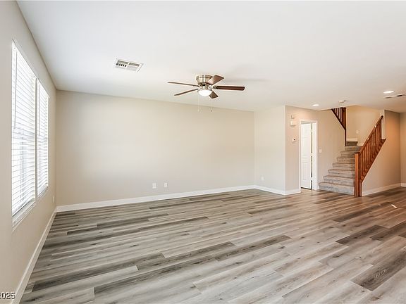Step into comfort and convenience with this charming two-story home offering 3 bedrooms, 2.5 bathrooms, and a spacious 2-car garage. The open-concept layout seamlessly connects the family room to the eat-in kitchen, creating the perfect space for gatherings and everyday living. Upstairs, the primary suite features a generous walk-in closet and a private retreat to unwind. Enjoy outdoor living in the large backyard, ideal for entertaining, gardening, or simply relaxing. This home combines style and functionality, making it a perfect choice for modern living in Las Vegas.