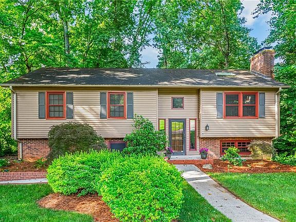 Welcome to this 3-bedroom, 2.5-bath split foyer home quietly nestled in Winston-Salem where the the beautifully landscaped grounds, mature trees, & peaceful setting feels like home the moment you arrive. Step into the upper level where vaulted ceilings & skylight fill the living room w/ natural light. A brick-surround wood-burning fireplace & hardwood floors set the tone for cozy evenings. The dining room features hardwood floors & chair molding. The kitchen boasts granite countertops, stainless steel appliances, eat-in island, & abundant cabinetry. The primary bedroom offers a relaxing retreat w/ hardwood floors, chair railing, & a private ensuite bath. 2 additional bedrooms—both carpeted—share a full guest bathroom. Downstairs, the lower level provides a warm & welcoming playroom/library area. Custom woodwork, built-in shelving & cabinetry, & a wood-burning stove make this space a perfect spot to unwind. Also on the Lower Level has a half bath, & Laundry Room. See Agent Only.