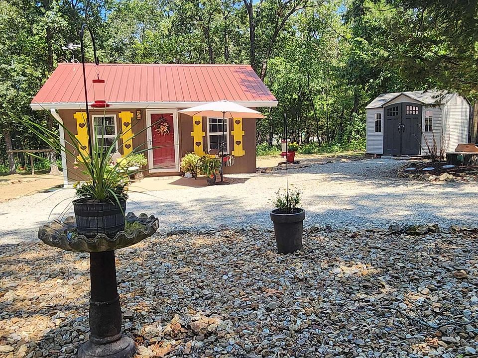 This has to be one of the cutest little homes on a 3 acre parcel. From the moment you pull up, its wonderful landscaping, circle drive, small storage shed, beautiful trees, and a hammock ready to go!! The adorable home was built in 2016. It has two bedrooms designed with storage closets, and one bathroom. The kitchen/living is an open green concept. Home comes furnished with all kitchen appliances and washer/dryer. Off the backside of the home you can enjoy the outdoors from your covered deck. Within 200 yards of the home is the corps for hunting and only 3 miles to the nearest boat ramp. You definitely wont want to miss this one!