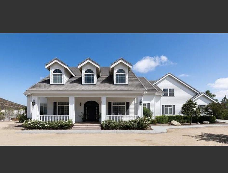 Gorgeous custom Wildomar home in the desirable Canyon View Estates! As you enter the private gate you pull up to an approx 5500 sq.ft. home on over 2 acres. The property is completely fenced & has an elevated lot to take advantage of the surrounding views. At the front you are greeted by a spacious porch, perfect for your morning coffee. The main floor features the dining rm, office, kitchen, family rm, 1 full bthrm & master suite which includes an en suite bthrm. The 2nd floor features 3 addt'l bdrms, 2 full bthrms & an approx 1800 sq.ft. bonus room which offers a theater room & upstairs balcony w/ direct access to the backyard. The country-style kitchen is a chef's dream w/ high-end appliances, granite counters, large pantry & separate breakfast nook area. The kitchen overlooks the family rm which showcases vaulted ceilings, gas fireplace & French doors leading you to the covered patio. The secluded master suite offers recessed lighting, gas fireplace & direct access to the patio. The master bthrm features dual walk-in closets, tile flooring, dual sink vanities, oversized tub & separate shower. The attached garage has 10ft doors & fits up to 8-cars. The backyard offers a covered patio, tons of fruit trees & plants while still being a blank canvas to make it your own! Looking for country-living that offers privacy & tranquility but city close, then this is the home for you! Located near the I-15 & I-215 & mins from schools, shopping & Temecula's award-winning wineries.