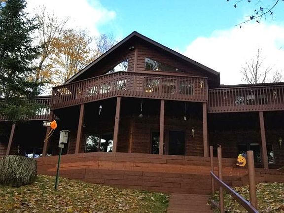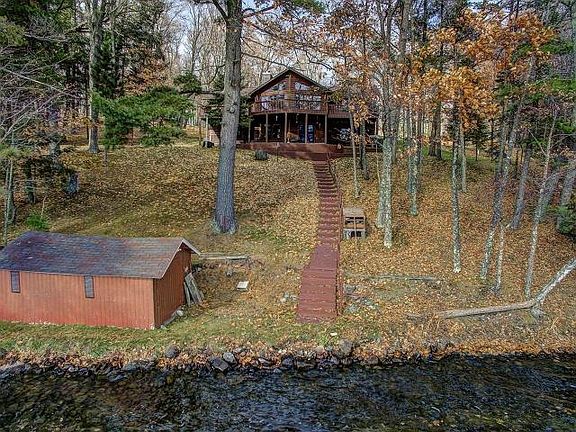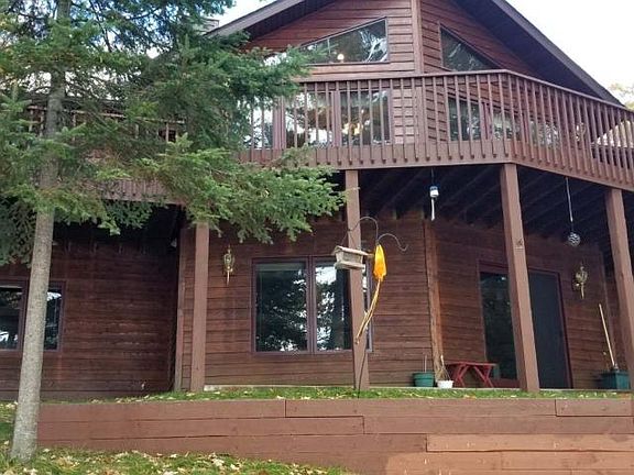 NORTH TWIN PRIVATE RANCH - Beautiful cedar-sided raised ranch with a 50' wrap-around deck faces south on North Twin. Walk-out basement leads you 25 steps to 200 feet of gorgeous sandy shoreline and dry boathouse on North Twin. Renowned North and South Twin lakes, which have great fishing on 3430 acres, sport two on-water restaurants to enjoy. Paved driveway leads to an insulated attached 2-car garage; new roof in 2017; 46' drilled well supplies great water. A very private setting with national forest and snowmobile trails very close. Cathedral ceilings set off the great room and master suite, which has a large walk-in closet and hot tub. Two other nicely sized bedrooms have roomy closets. Windows offering glorious North Woods views include custom window coverings. Lower level is ready to be finished with room for a large family room, bedroom and workshop. Two 50-gal. water heaters; 250-amp electrical service; generator. Short drive to amenities and the great outdoors! $36k below FMV!