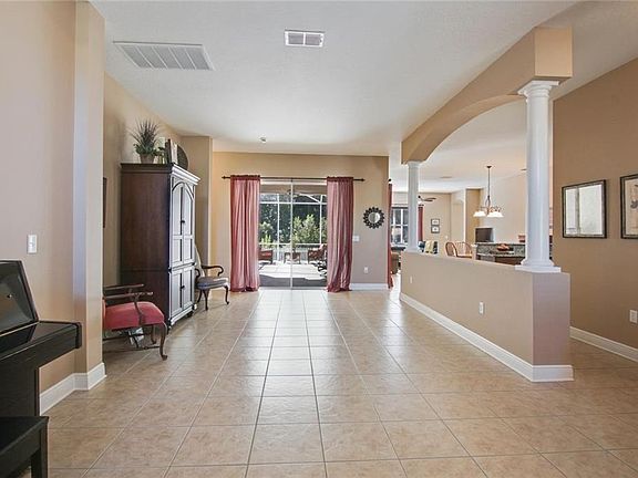 Fantastic home in the sought after Gated Community of Grassglen in Seven Oaks! Across the street from A rated Seven Oaks Elementary school. Impressive move-in-ready home on a Conservation Homesite has 5 bedrooms, 3 baths, and 2881 square feet of living area, all on a single level. Upon entering the foyer, you will see the dining room and formal living room that feature ceramic tile, architectural details, and nature views. The kitchen has custom cabinetry, granite counters, and a breakfast bar. The kitchen overlooks the breakfast nook, the family room, and the covered patio. The family room has sliders that lead to the patio. The extended screened in patio offers space for entertaining, conservation views, and access to the fenced yard. The large master has trey ceilings, walk-in closet, and a luxurious bathroom with dual vanities, garden tub and a separate shower. The floorplan offers three distinct spaces, including one for secondary bedrooms, one that would be ideal for a guest room, and a separate master suite. Seven Oaks has resort pools, theater, cafe, fitness center, sports fields, tennis courts, volleyball, playground, walking trails and more. Residents enjoy easy access to The Shops at Wiregrass, Florida Hospital, Pasco-Hernando State College, Center Ice, Tampa Premium Outlets, I-75 & I-275. Property tax includes the CDD.