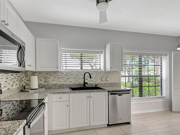 THIS UNBELIEVABLE 3/2 CORNER UNIT ON THE FIRST FLOOR IS READY TO GO! ALL UPDATED WHITE KITCHEN W/ STAINLESS STEEL APPLIANCES! WALL TO WALL UPDATED TILE! OPEN FLOOR PLAN LOOKING OVER THE LAKE FROM EVERY WINDOW WHICH MAKES THE UNIT A PLEASURE TO BE IN! THIS HOME HAS BEEN METICULOUSLY MAINTAINED & IS LOCATED IN A 55+ AS PER ASSOC.! THE COMMUNITY FEATURES THE FOLLOWING: TENNIS/PICKLE BALL COURTS/COMMUNITY CLUB HOUSE WHICH CAN BE RENTED FOR ALL LARGE GET TOGETHERS/CLOSE TO THE SHOPPING & RESTAURANTS! THIS IS A VERY FRIENDLY COMMUNITY WITH A LOT OF ACTIVITIES! LOW MAINTENANCE FEE WHICH INCLUDES WATER/TRASH/CABLE TV/COMMON AREAS! APARTMENT HAS ASSIGNED PARKING WITH A LOT OF GUEST SPOTS ALSO! DON'T MISS OUT ON THIS AS THE NICE ONES GO QUICKLY! EZ TO SHOW! APPL. & ALL PERTINENT INFO IS ATT. HEREIN!