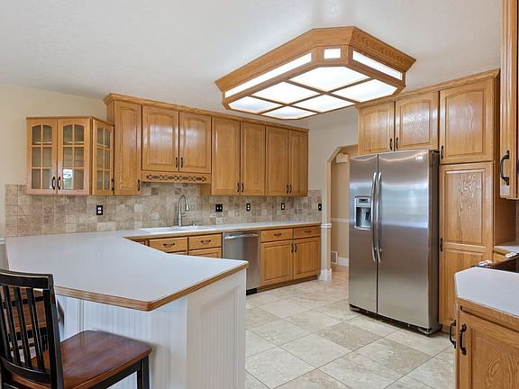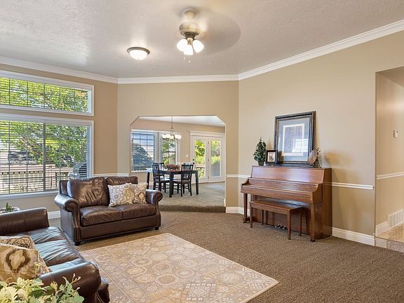 You'll love the breathtaking mountain and lake views from the large deck of this beautiful brick home! Six beds, three baths. Updated throughout. Hardwood flooring, travertine tile, 11 foot ceilings. Gigantic basement family room, with future plumbed kitchenette. Daylight, walk-out basement. Storage rooms with built-in shelving. Stores, dining, park, school, and HAFB, HWY 89, and I-15 a five minute drive away. Seller the original owners. Home in immaculate condition and includes home warranty.