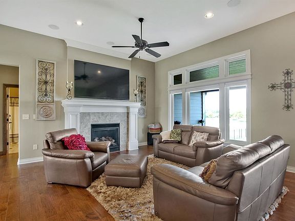 Fantastic custom built one, owner home located in Fox Ridge. Gorgeous is the first word that comes to mind when describing this home. The home sits on a nice sized lake lot and was built with privacy in mind. You can enjoy the views of the lake from your covered deck or patio. You will enjoy spending time outside. The patio is setup for a tv and also has a beautiful wood burning fireplace that has a gas start. You tech gurus will enjoy the professionally designed and installed central multi zone audiovisual system. This amazing split bedroom plan allows plenty of space to spread out. There are 3 bedrooms on the main floor, a 4th bedroom suite upstairs, and two bedrooms in the basement for a total of 6 bedrooms. 4 full bathrooms have been strategically placed throughout the home. The home owner thought of it all when designing the master suite. You have immediate access to the deck, views of the lake, a gas fireplace to enjoy, and a huge walk-in closet that joins the main floor laundry room. A 2nd master suite is located upstairs. Enjoy the open kitchen, it features beautiful wood cabinets, granite countertops, and high-end appliances. You'll have plenty of room for storage in the HUGE hidden walk-in pantry. The kitchen opens to the informal dining area and has immediate deck access down to the outdoor kitchen. The basement is a fully finished walk-out basement that features a great wet bar for entertaining. If you don't work out, you might start! There is a fitness area with professionally installed rubber gym floor and full-length mirrors. This home has so much more to offer. Come see for yourself, schedule a showing today before it's gone!