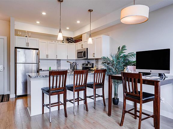 Welcome to Copper Sky - Top Floor, 2 Bed, 2 Bath condo welcomes you with views as soon as you walk through the door. The home offers a bright and modern open floor plan with vaulted ceilings. The kitchen is equipped with stainless steel appliances, granite countertops, and breakfast bar, perfect for entertaining guests. The master bedroom features a large picture window, walk-in closet, and a 4-piece ensuite. There is also a generous-sized 2nd bedroom, 3 piece bathroom, in-suite laundry room, and a large private deck situated on the quiet side of the building. The home comes complete with u/g parking stall and a storage locker. The Amenity Centre offers Pool, Hot Tub, Tennis Courts, Gym, Sauna, entertaining areas, and more! This is a fantastic opportunity for the 1st time buyer or investor!