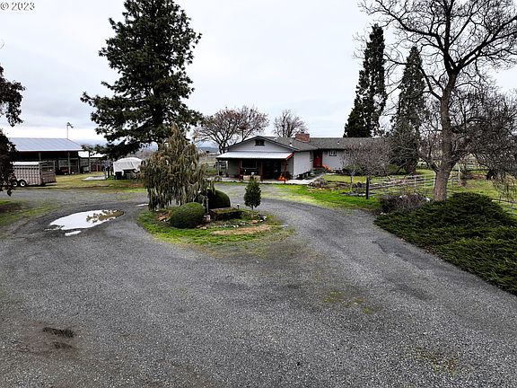 PRICE REDUCED! The East Loop Road property is our latest offering in the greater Hermiston, Oregon area. With 6.7 acres in total (4+ irrigated), it features all the necessities to make the perfect horse and livestock property. The recently updated 3400 square foot home is surrounded by lush green turnout pastures, a six-stall horse barn with connected outside runs, a full-sized riding arena and hot walker. The property includes two wells for both irrigation and domestic use. As mentioned, the house was recently updated by Bothum Construction and features a beautifully done large kitchen area, main bedroom, two additional bedrooms, as well as, mostly finished basement area. The view looking to the north and west is unmatched in the Hermiston area, as the property's elevated position overlooks the cityscape. As your eye moves on northward, the view begins to transition into the rough breaks of the Columbia River and the irrigated farm ground beyond that. This East Loop Road location is truly unmatched as it offers seclusion of country living and yet is less than a 10-minute drive to town. The property is zoned RR2 and can be divided.