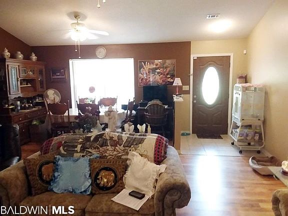 Come enjoy this spacious home on a deep lot with direct lake frontage. Open floor plan is perfect for those who enjoy entertaining. There is also a separate sunroom/den if you want a more private space to relax or to use as a home office. Fenced backyard includes a deck, large dog kennel and a gate to access the lakefront dock. Split bedroom plan. Very pet-friendly neighborhood. Covenants even allow up to two horses that can be kept on the property (all other livestock excluded.) HOA includes a park at the end of Donovan Drive with a boat launch and dock for putting your boat, kayak or canoe into Styx River. You might even want to sit on the dock to do a little fishing or to dangle your feet in the water while taking in the tranquility. Access to all the lakes/ponds throughout the neighborhood is also included. Dues also cover maintenance of the streets. Storage shed at the side of the home is 10x10.