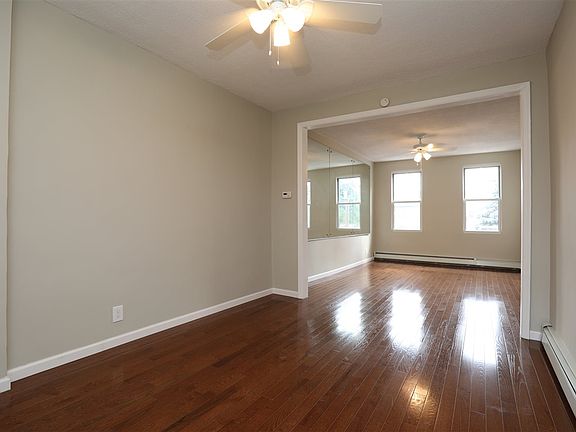 This spacious 3 bedroom 1.5 bath single family home has been renovated from top to bottom with beautiful finishes and is freshly painted. It features private entry and front porch, hardwood floors throughout the first floor, modern eat in kitchen with shaker cabinets, natural granite countertops, stainless steel appliances, ceiling fans and partial city views from the home as well as from the the private pavered backyard which is approximately 800 Sq. Ft. The main level has a living room, dining room, kitchen with tile floor and half bath. The top floor has three spacious bedrooms, one full bath lots of closet space, one large walk-in closet, skylight over the staircase and new carpets. There's also plenty of street parking available across the street and two municipal parking lots on the block. The front of this home is South facing, with a ton of natural light, and looking out over Washington Park. Located only two blocks off Blvd East and Bergenline Ave. Extremely easy to get into NYC. Come see it today!