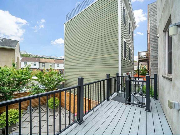 Newly built 2,700sqft row house. Built in 2008, luxury single family has it all a private roof deck with dazzling NYC views, garage parking and beautiful yard. Top of the line kitchen and bathrooms featuring kitchen with CaesarStone counters, SS BOSCH and Kenmore Elite appliances. The entire top floor is a gorgeous master suite with 2 oversized walk-in closets and a spa-like master bath. Two zone central HVAC, high capacity front loading Samsung Steam washer and dryer, pre-wired for DirecTV & Comcast
