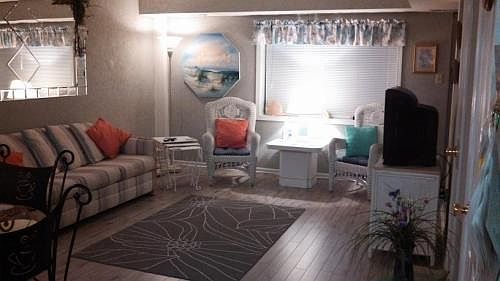 tastefully decorated townhouse. Complex has pool and off street parking. Unit consists of living room, dining room, new kitchen, half bath and deck on first floor. Upper level has large bedroom, remodeled full bath, walk in closet, utility room with washer and dryer. Upper level also has a deck.