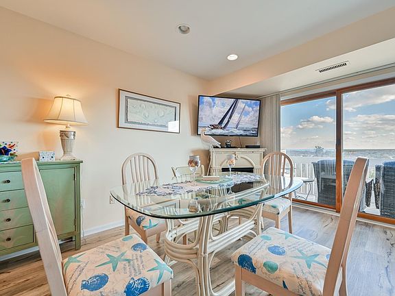 Direct Ocean front Townhome. Ocean Views from both large decks off living room and master bedroom. It is the largest 2 bedroom in the building and one of the largest on the Island at approximately 1400 sq ft. A unique unit that has been upgraded. Newly remodeled kitchen, powder room, guest bath and master bath. New laminate flooring, new coffee and beverage bar, new HVAC March 2023, most furnishings will be conveyed, rental income is $35,000 2023. 2 decks with trex flooring. Storage bin and beautiful inground pool w/outside shower. Pets are allowed. This unit is one of a kind and only comes up for sale once in awhile on the Island. South End of island.